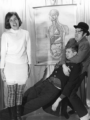 Z DUBA PADOL, ODDÝCHOL SI. Oľga Májovská, Miroslav Siget a Stanislav Štepka v kabaretnej hre Z duba padol, oddýchol si z roku 1968. Foto: Edo Manina